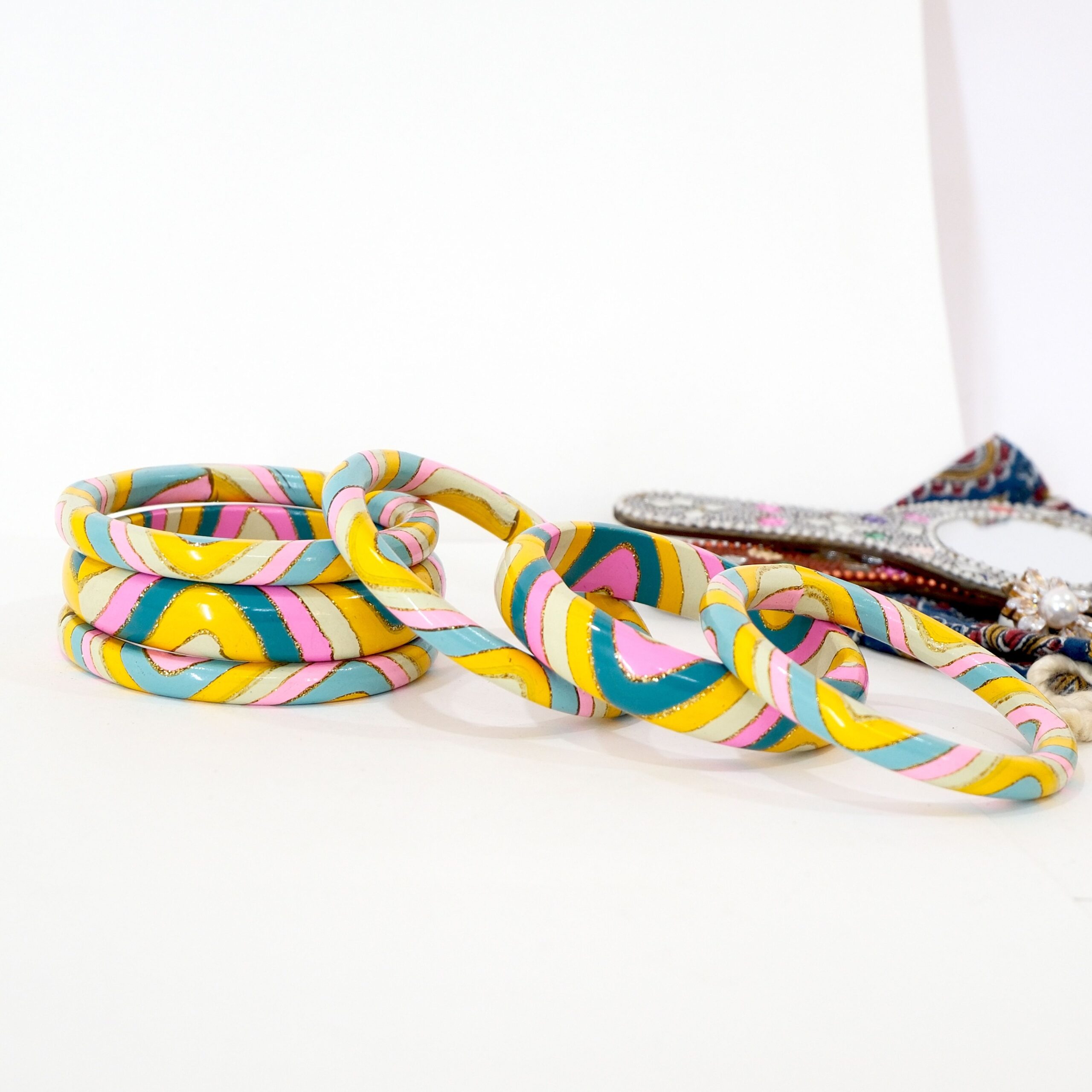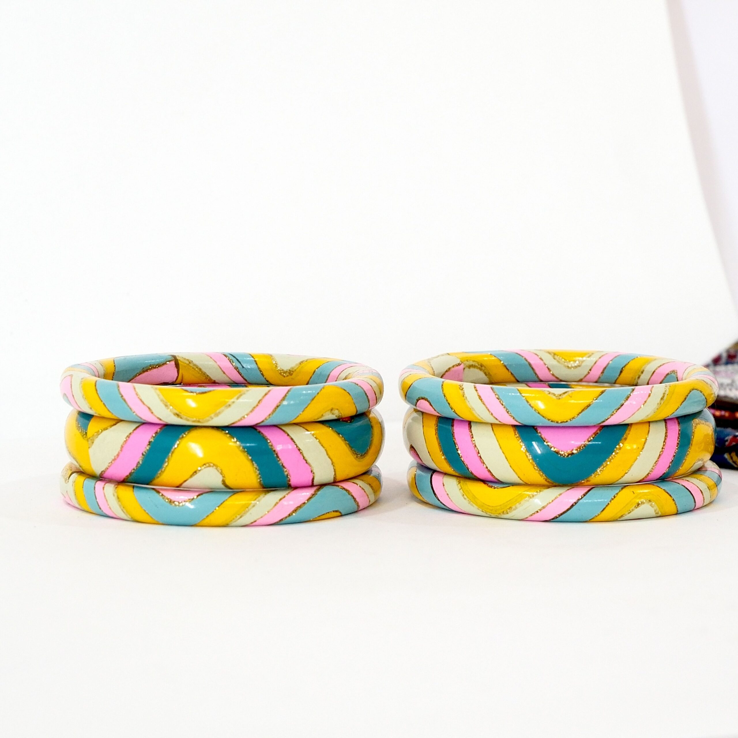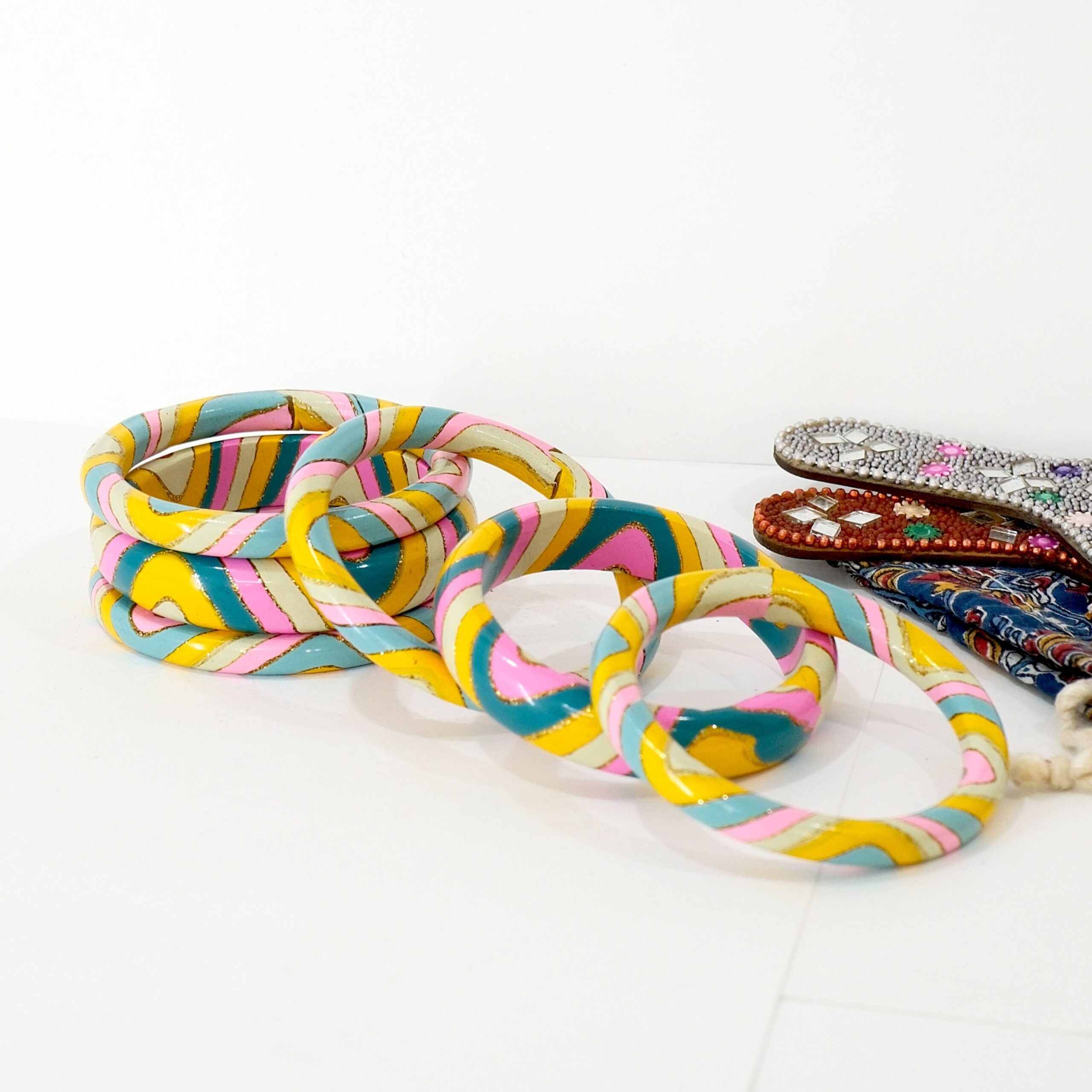 skilled artisans in Jaipur. This 6 Piece set of bangles combine traditional handwork with contemporary
